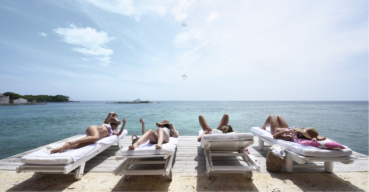 Una van negra estaba en la puerta del aeropuerto lista para llevarnos al muelle donde nos esperaba una lancha llena de sorpresas para salir hacia las Islas del Rosario. En cuestión de 15 minutos, ya estábamos montadas en la lancha con nuestros bolsos de playa personalizados, vestido de baño y sombrero,