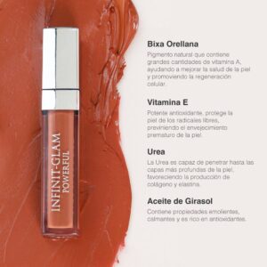 Nuestro INFINIT-GLAM POWERFUL, es un rubor en crema para labios, mejillas y ojos. Su exclusiva fórmula multifunción, permite darle un tono radiante y juvenil a los labios y a la piel del rostro. Es de textura suave y ligera con acabado mate y aterciopelado. Se puede mezclar con otros colores para lograr el tono deseado. Contiene pigmentos naturales y extracto de Bixa Orellana, los cuales ayudan a mantener la belleza natural de la piel; revelándola firme, hidratada y joven. …Ver más