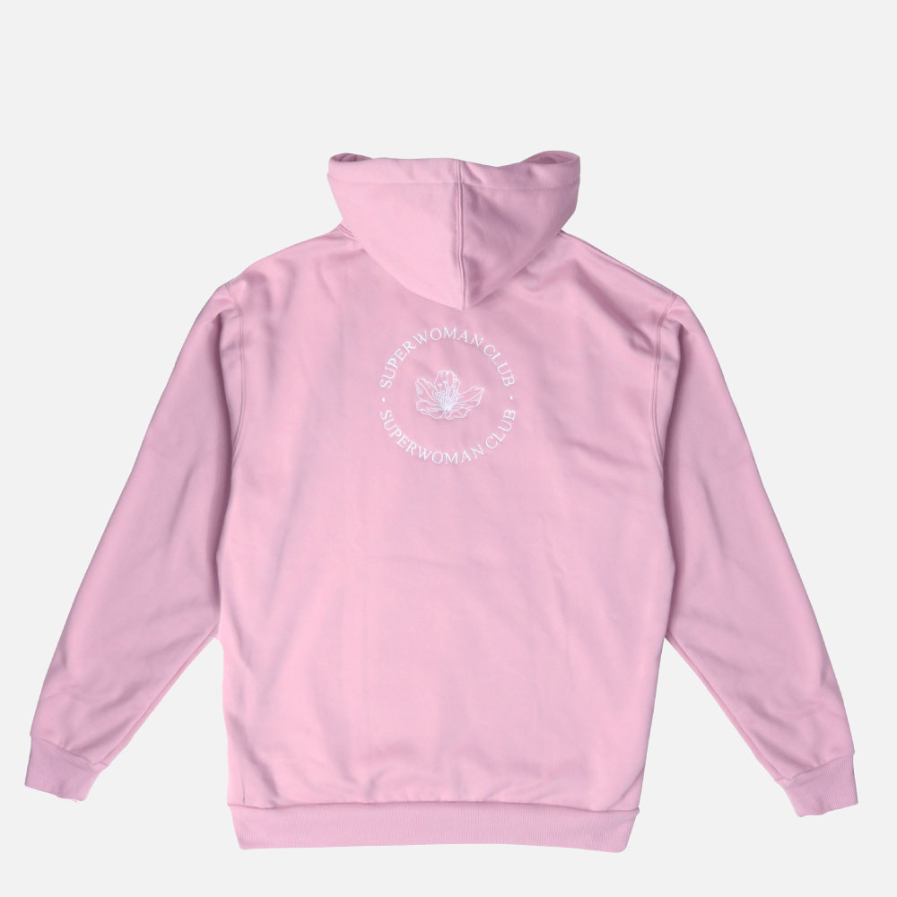 Se complementa con capucha, cordones con punta de metal y bolsillo grande en frente, diseñada con bordado delantero con el nombre de nuestra marca, además tiene un estilo único bordado con “super woman club” en la parte trasera de la prenda.