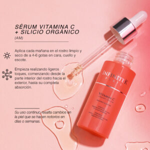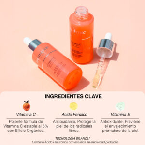 Sérum Vitamina C + Silicio Orgánico: Potente antioxidante con alta concentración de extractos naturales. Potencializa la luminosidad del rostro, disminuye líneas de expresión y arrugas, combate el envejecimiento prematuro, reafirma y fortalece. ¡Resultados notorios en días o semanas! Contiene ingredientes activos dermatológicamente probados.